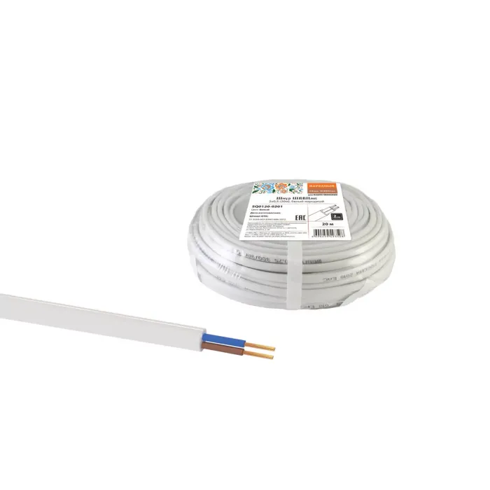 Шнур ШВВПмб 2х0,5 (20м), белый Народный
